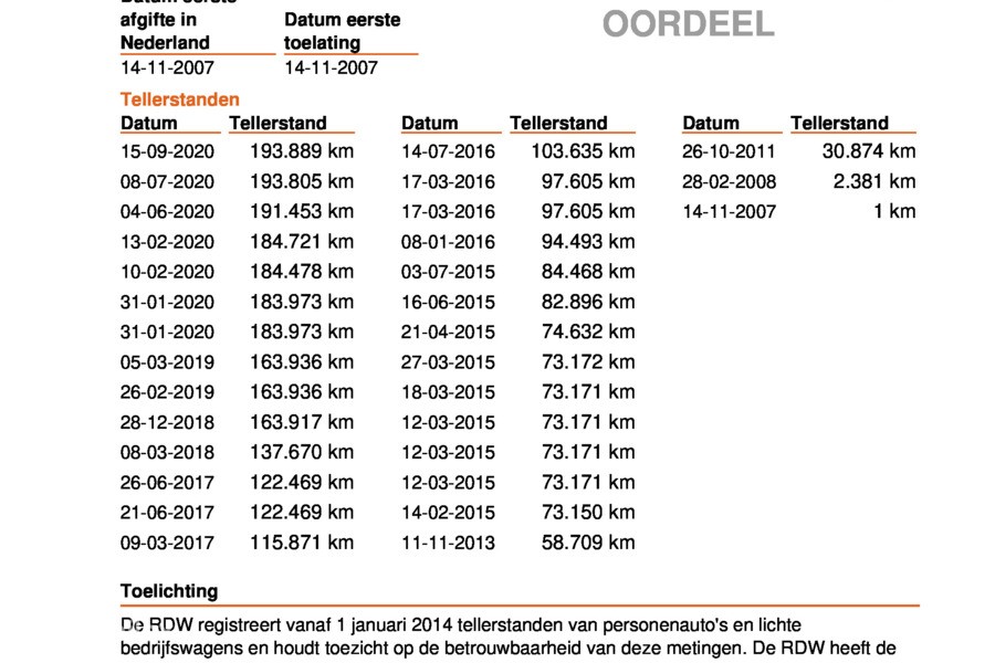Het NAP-logo staat alleen bij voertuigen die gecheckt zijn bij de RDW en waarbij de RDW een logisch oordeel heeft afgegeven ten aanzien van de reeks kilometerstanden.