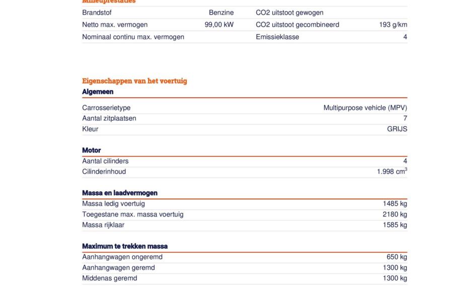 .Transmission, embrayage, freins, ressorts, direction, etc. comme neufs. 6 places (7e siège non présent). 3 cartes-clés incluses. Pneus en bon état. Courroie de distribution changée à 290 000 km. Tous les livrets sont inclus. Classe d'émission d'essence 4 (important pour le permis de stationnement des résidents dans certaines villes). Essai routier complet, inspection d'achat et reprise possibles... Reconnaissance RDW. Transfert et exportation (y compris les plaques d'immatriculation export avec assurance) possibles 24h/24 et 7j/7.